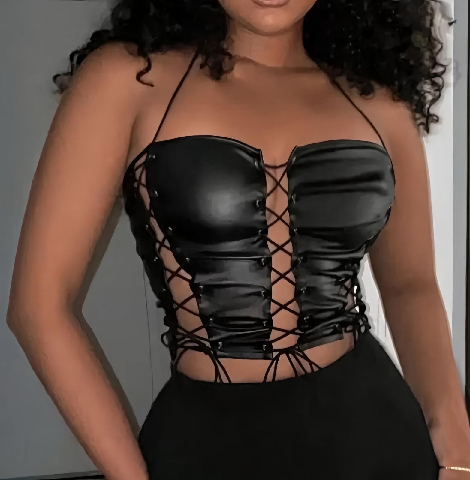 Destaca con estilo y sensualidad con esta blusa corta en cuerina ajustada al cuerpo, diseñada para resaltar la figura de manera única. Su diseño de cortes unidos por un cordón que pasa por ojaletes permite un ajuste personalizado que moldea la silueta y aporta un toque coqueto y moderno. Ideal para salidas nocturnas, fiestas y looks atrevidos, esta blusa combina blusa corta en cuerina para mujer, blusa ajustada al cuerpo, blusa con cordón en ojaletes, blusa con cortes decorativos, outfit sexy y coqueto, moda femenina en tendencia y look moderno, convirtiéndose en una prenda imprescindible para lucir segura, elegante y con personalidad.