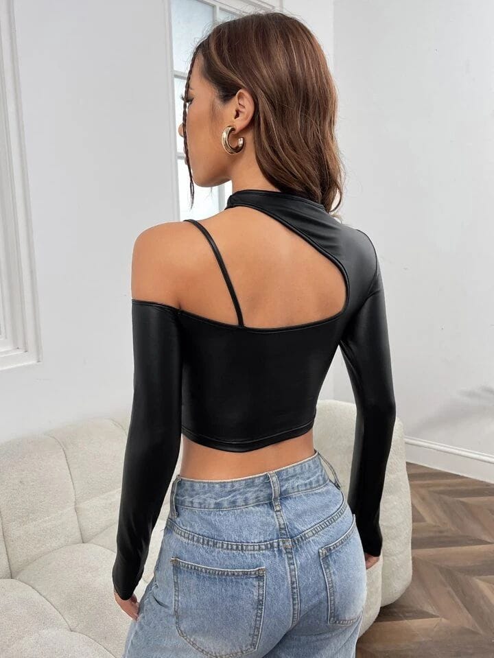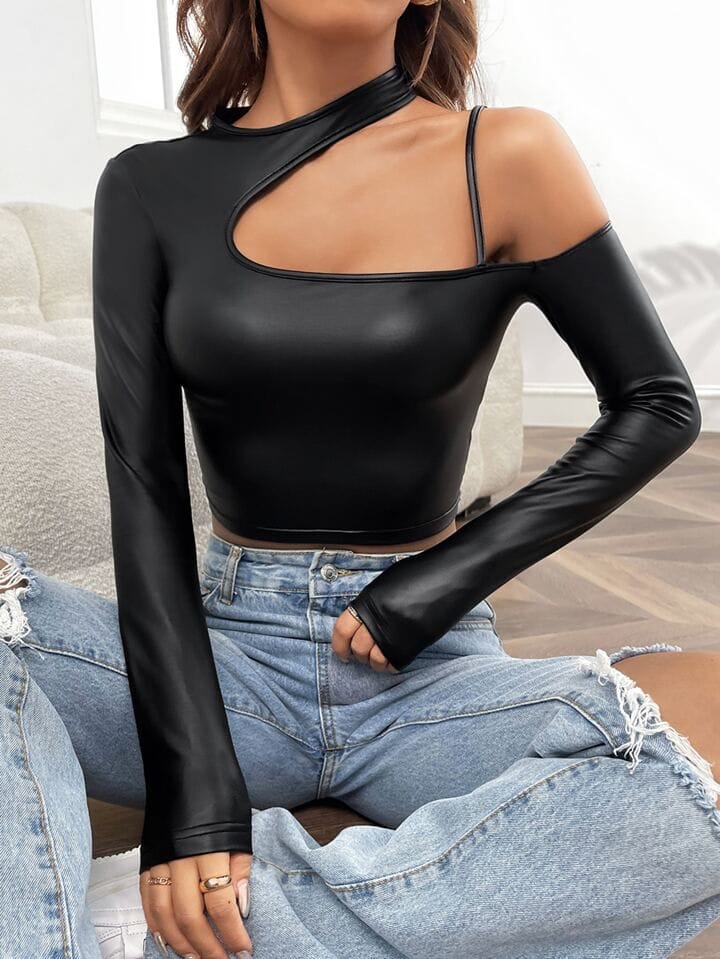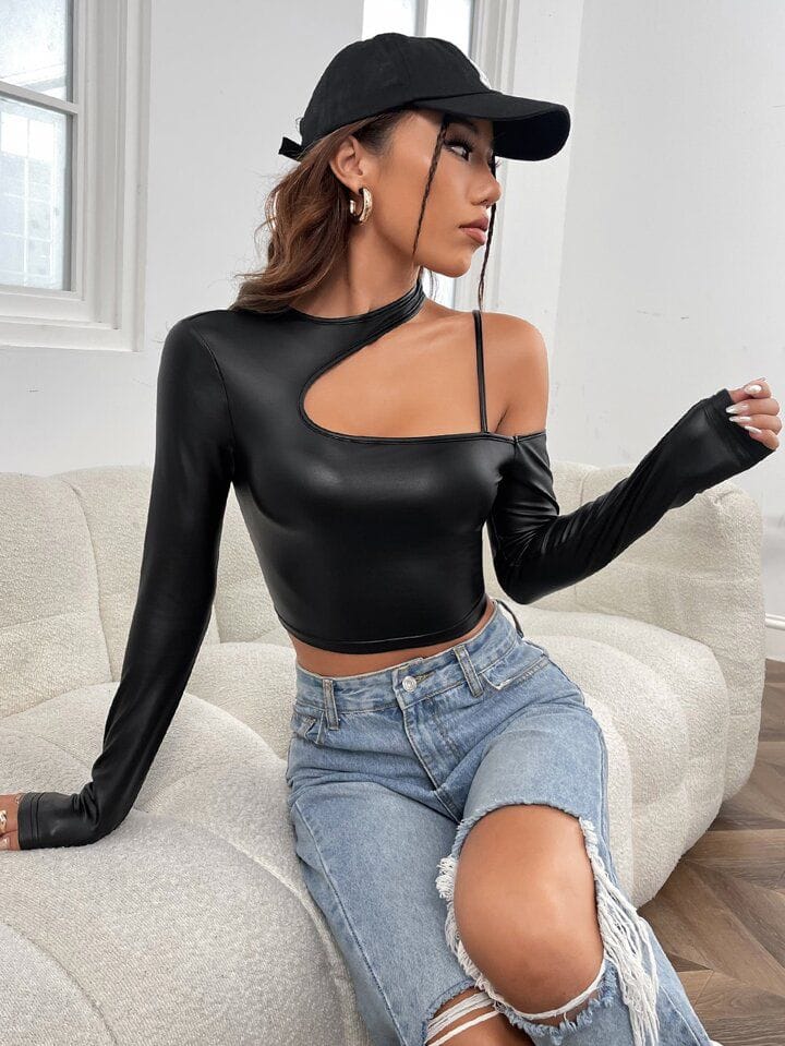 Blusa Ajustada en Cuerina con Manga Larga y Corte Sensual – Estilo y Elegancia en Cada Detalle