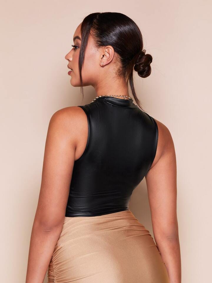 Blusa Corta Elegante sin Mangas con Cuello Alto – Refinamiento y Estilo Sofisticado