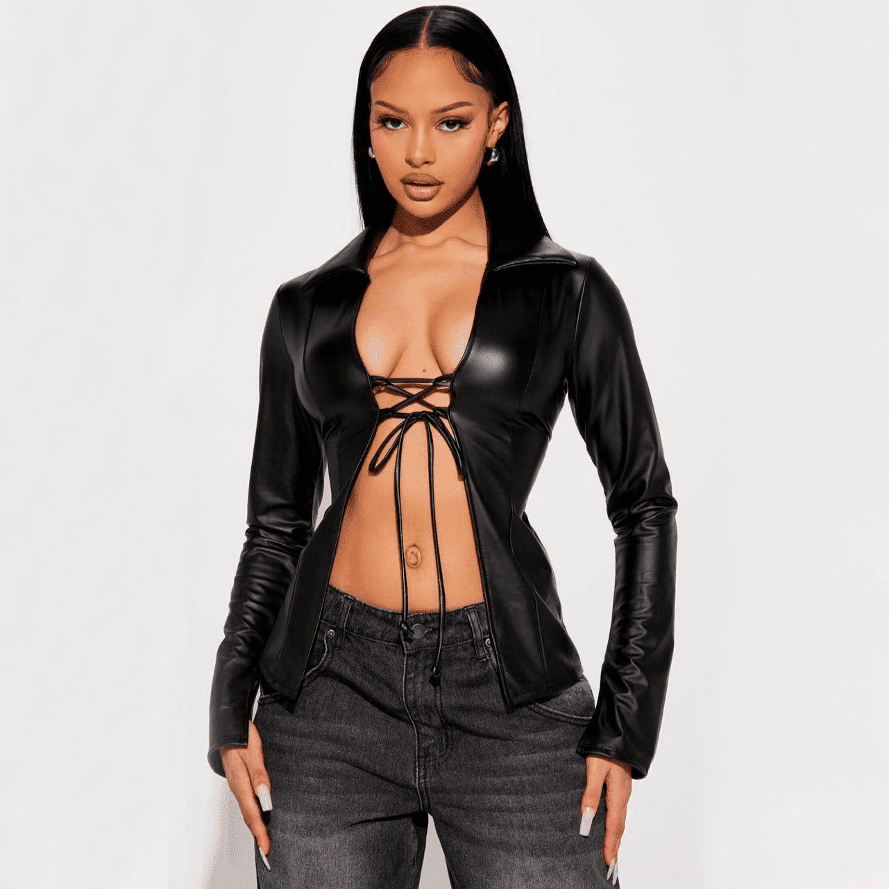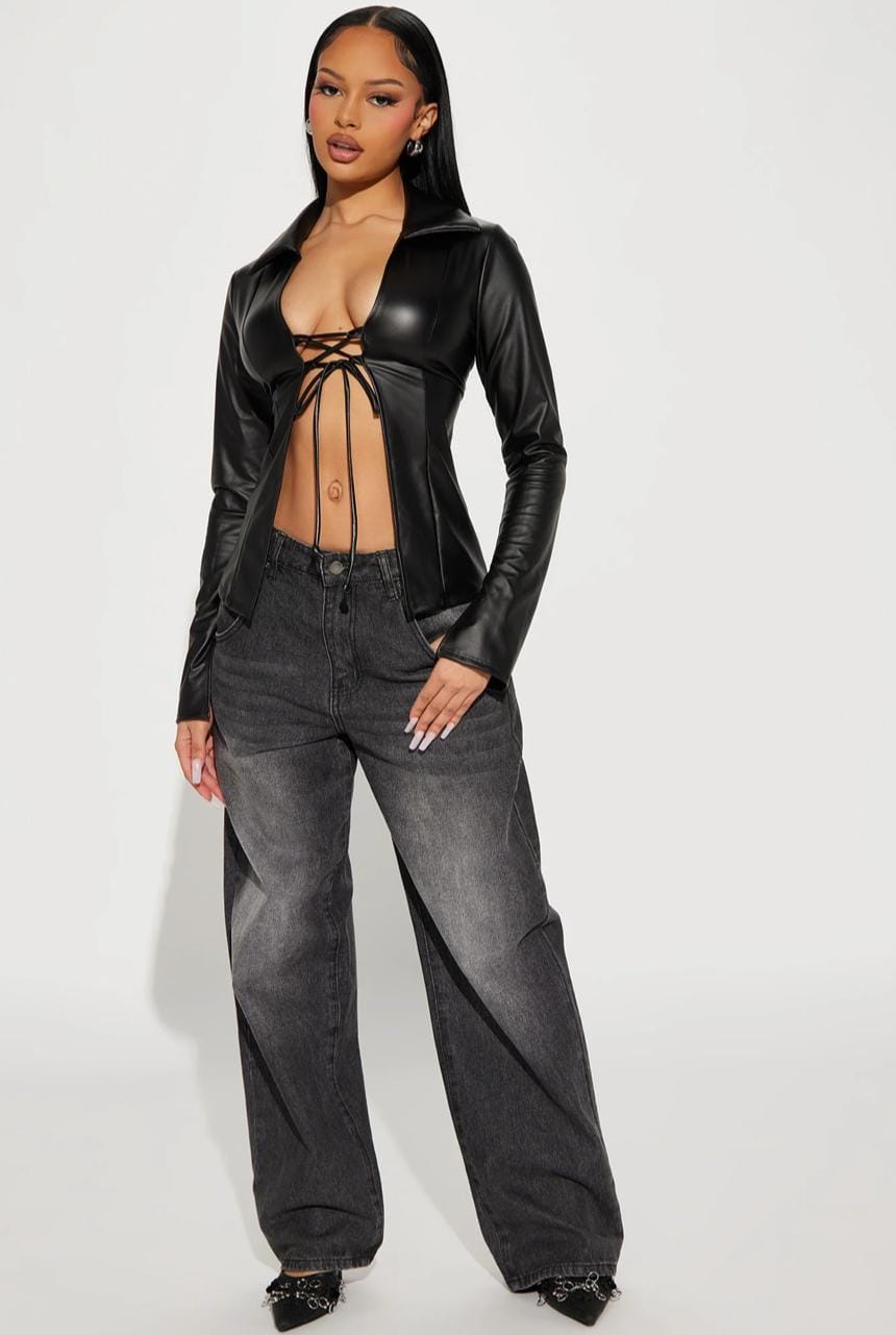 Eleva tu estilo con esta elegante blusa larga de mangas largas y cuello ancho, diseñada para mujeres que buscan un look sofisticado con un toque de sensualidad. El frente de la blusa está completamente abierto, revelando la piel de manera sutil y delicada, lo que la convierte en una prenda única y atrevida. Dos tiras finas y elegantes se entrelazan en el busto, proporcionando el ajuste perfecto mientras añaden un detalle coqueto y llamativo. Las mangas largas brindan un aire de refinamiento, mientras que el cuello ancho equilibra la sensualidad del diseño abierto con un toque de clase y distinción.