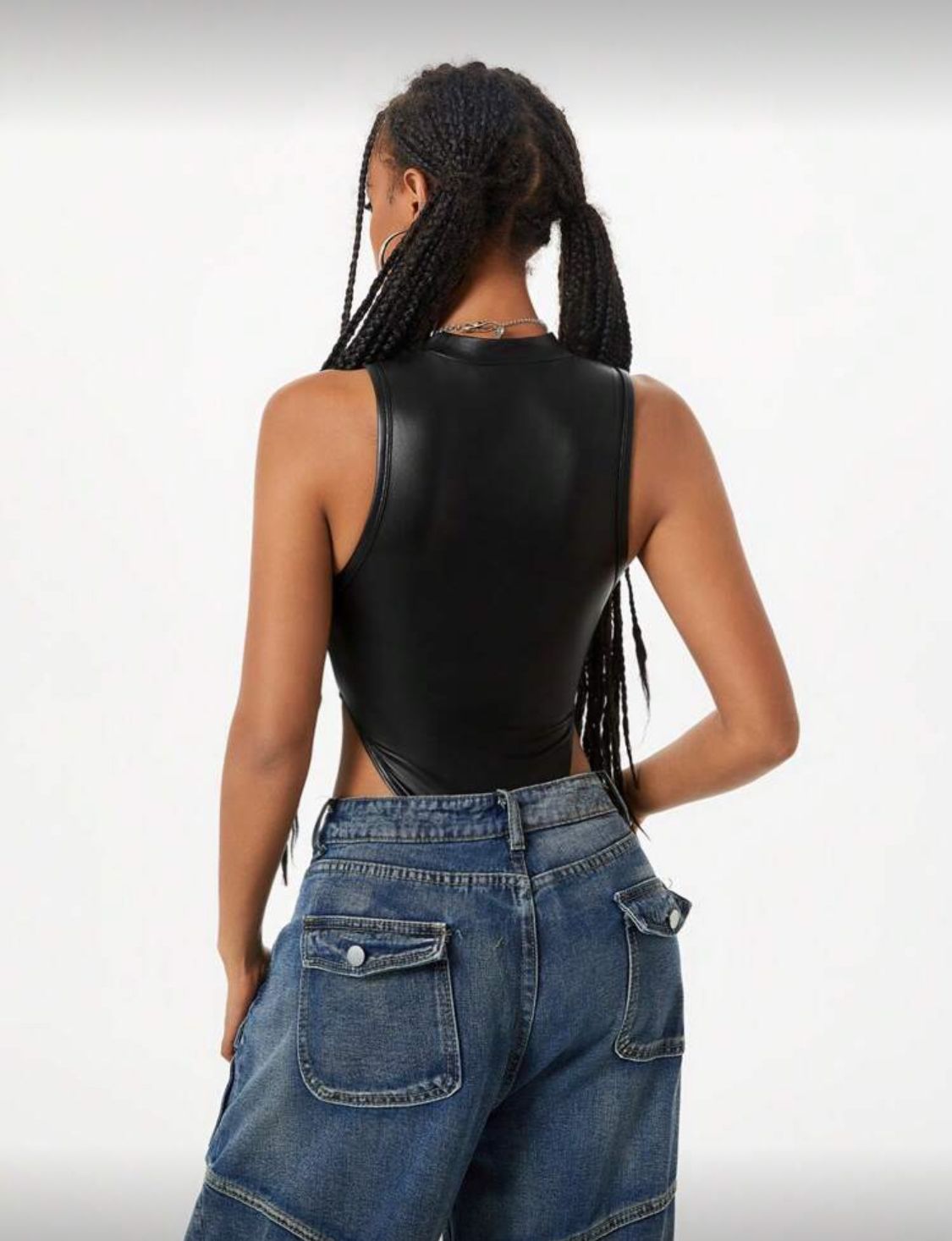 Este body de dama en cuerina ajustado al cuerpo es una prenda moderna, sensual y en tendencia, ideal para realzar la silueta femenina. Su diseño con cuello alto sin mangas aporta un estilo elegante y sofisticado, mientras que el corte descaderado añade un toque atrevido y llamativo. Confeccionado en cuerina de alta calidad, este body en cuerina para mujer ofrece un ajuste cómodo y favorecedor, perfecto para crear outfits nocturnos, urbanos o elegantes. Es ideal para combinar con pantalones, faldas o shorts, convirtiéndose en una pieza versátil y protagonista dentro de la moda femenina actual.