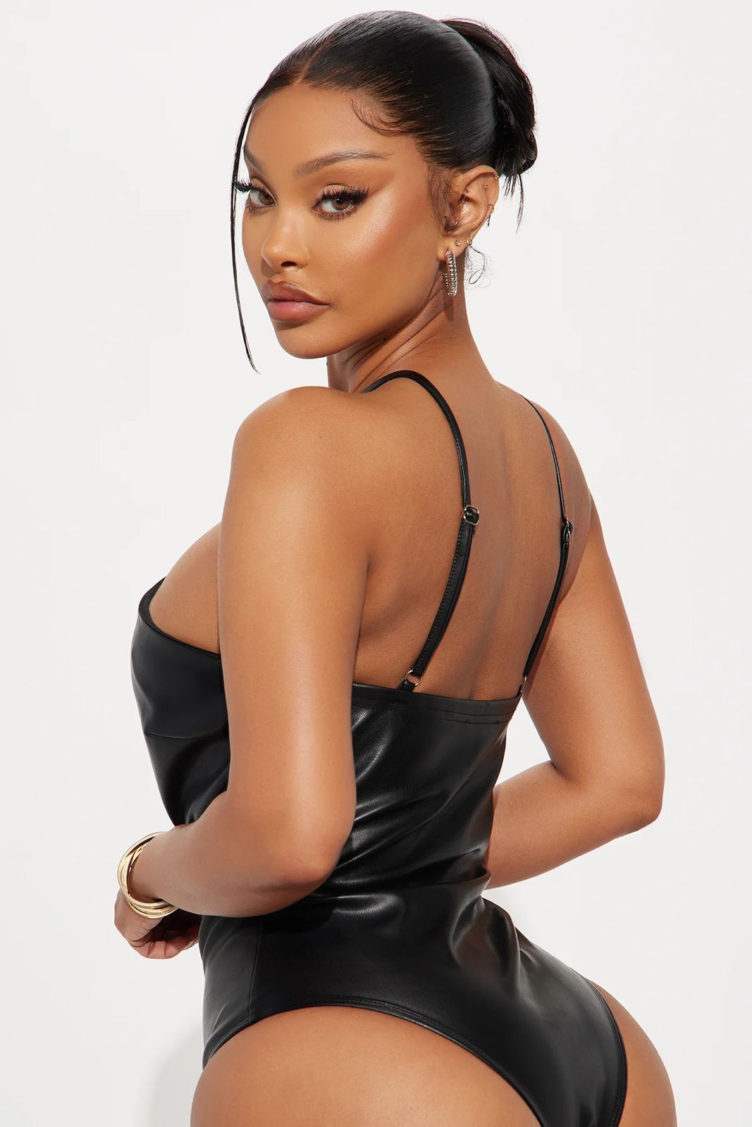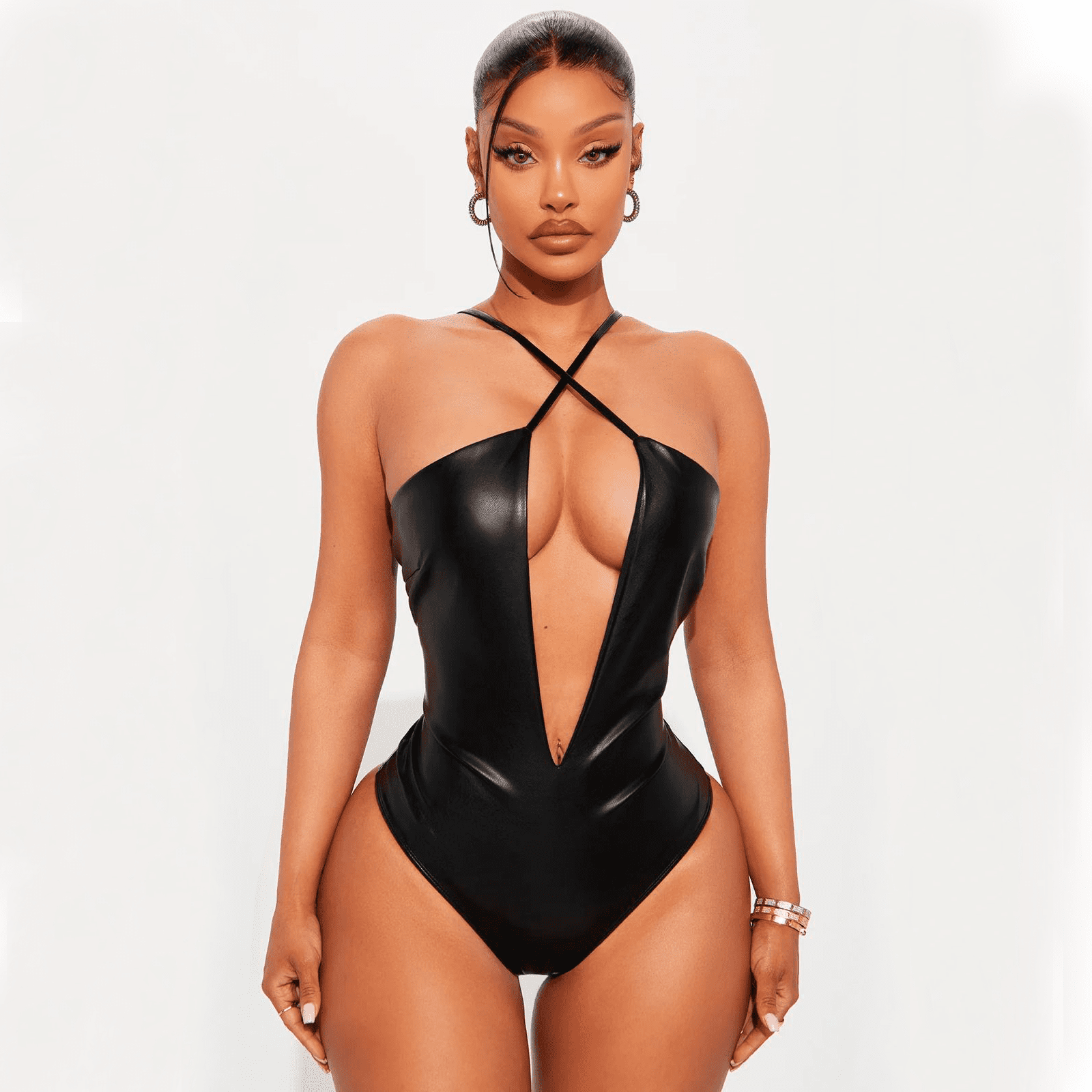 Este body en cuerina para dama destaca por su diseño ajustado al cuerpo que realza la silueta femenina con un estilo sexy y elegante su escote pronunciado crea un efecto sensual mientras las dos tiras delgadas sobre los hombros forman un diseño cruzado en el pecho que aporta un toque moderno y llamativo su material en cuerina brinda un acabado sofisticado y atractivo ideal para looks nocturnos salidas especiales o combinaciones urbanas este body elegante y cómodo es perfecto para mujeres que buscan una prenda versátil con diseño exclusivo body en cuerina body sexy body ajustado para mujer body elegante de moda body con escote body moderno para dama