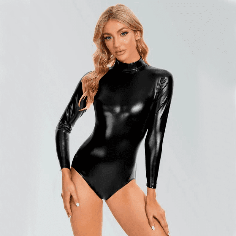 - Material de Cuerina Premium: Confeccionado en cuerina de alta calidad, este body proporciona una textura suave y un brillo elegante que se ajusta perfectamente al cuerpo, realzando tu figura con un toque de lujo.