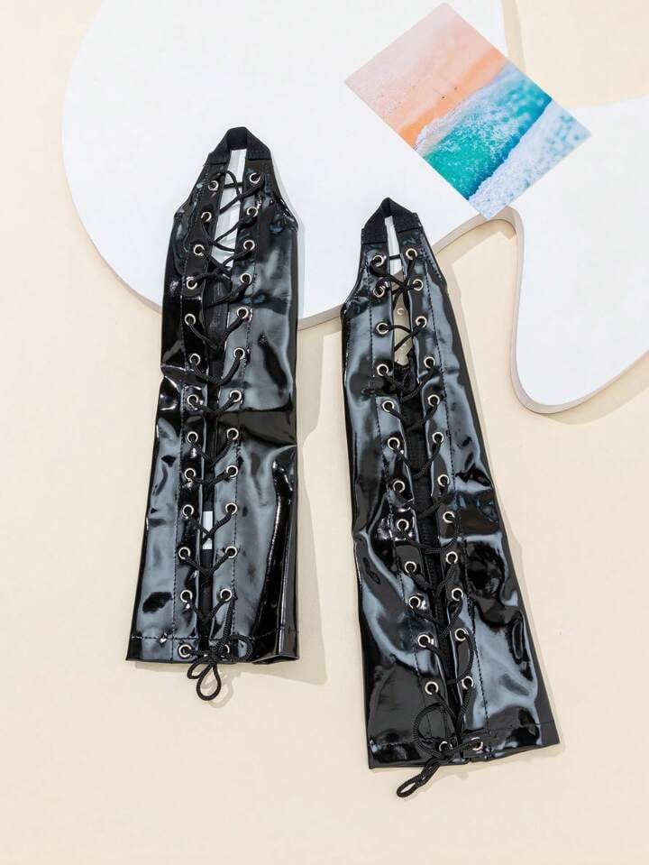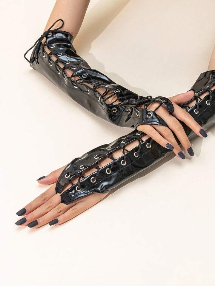 Guantes Ajustables en Charol con Ojales y Cordón Entrelazado