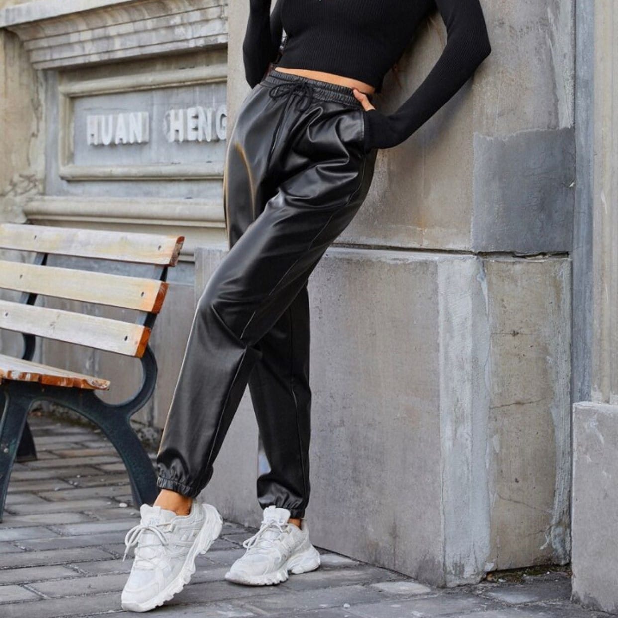 Joggers en Cuerina con Pretina Resorte y Cordón Ajustable