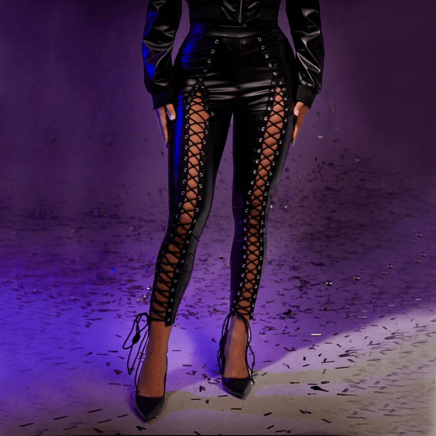 Leggins Cuerina Ajustado al Cuerpo con Aberturas