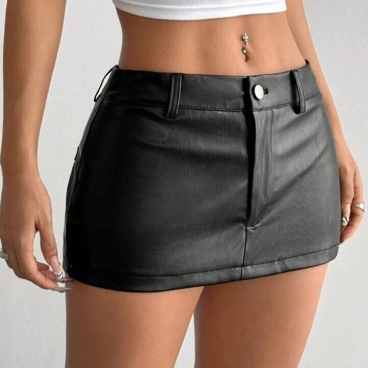 Eleva tu estilo con nuestra mini falda en cuerina para mujer, un diseño sexy y juvenil que combina elegancia y actitud. Esta falda cuenta con cierre delantero funcional, botón plateado de lujo y falsos bolsillos en la parte trasera, creando un look moderno y atractivo. Ideal para outfits de moda femenina, es perfecta para combinar con blusas, crop tops o corsets y lucir increíble en fiestas, salidas nocturnas o eventos especiales. Fabricada en material tipo cuerina de alta calidad, garantiza comodidad, ajuste perfecto y un brillo sofisticado que marcará tendencia.