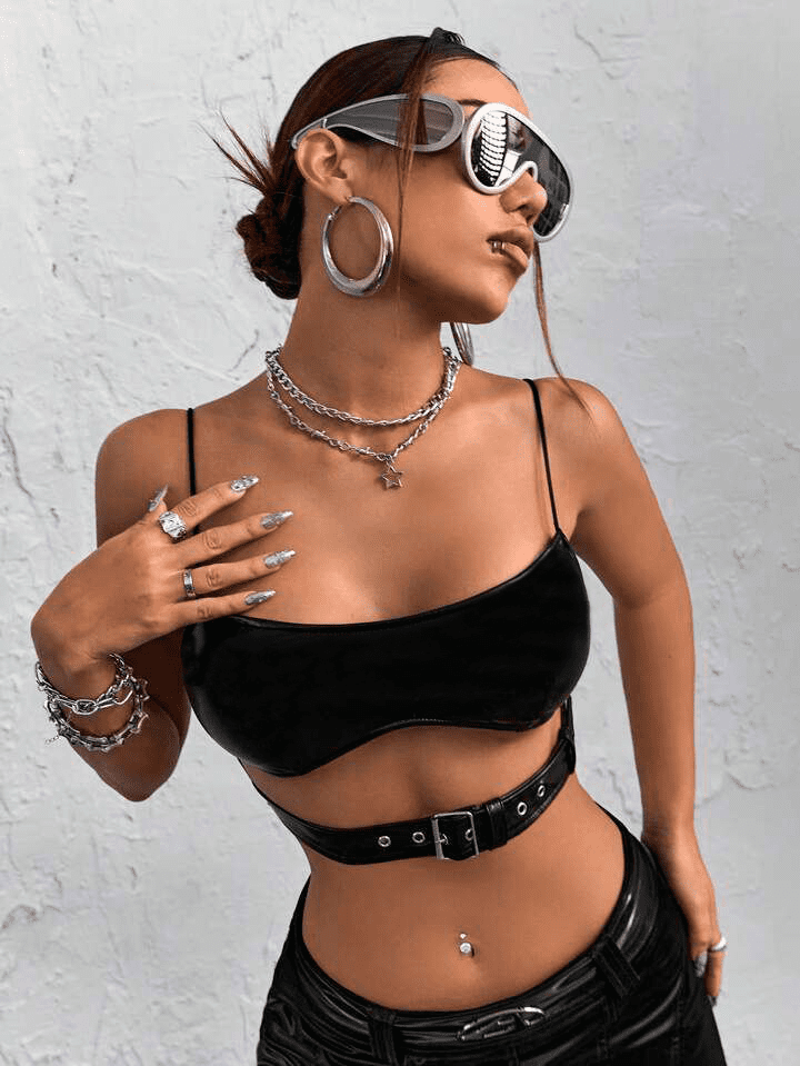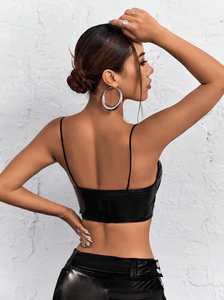 Luce un estilo moderno y atrevido con este top en cuerina ajustado al busto con tiras delgadas sobre los hombros y cinturón decorativo con hebilla en el abdomen, diseñado para realzar la silueta y aportar un toque coqueto y sexy. Su ajuste al busto y al abdomen mediante el cinturón permite moldear la figura mientras las tiras delgadas sobre los hombros aportan delicadeza y estilo. Ideal para fiestas, salidas nocturnas y looks impactantes, este top combina top en cuerina para mujer, top ajustado al busto, top con tiras delgadas sobre los hombros, top con cinturón en abdomen, crop top coqueto y sexy, outfit moderno mujer, moda femenina en tendencia y look atrevido, convirtiéndose en una pieza imprescindible para lucir segura, elegante y con estilo.