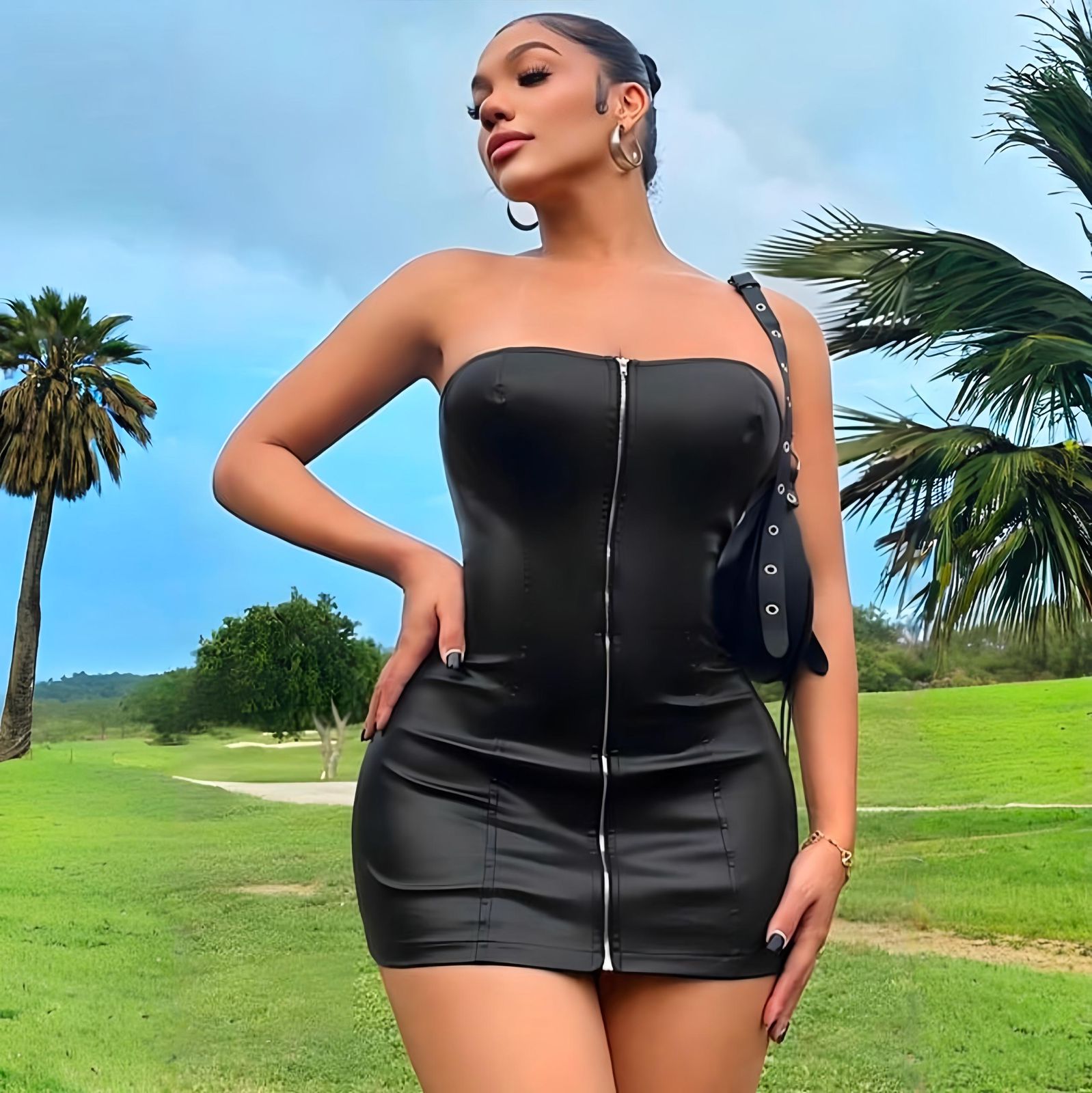 Luce un estilo atrevido y sofisticado con este vestido corto en cuerina strapless, diseñado para resaltar la figura y destacar en cualquier ocasión. Sus cortes frontales estratégicos aportan un efecto sensual y moderno, mientras que el cierre plateado delantero añade un detalle llamativo y funcional que permite un ajuste perfecto al cuerpo. Ideal para fiestas, salidas nocturnas y eventos especiales, este diseño combina vestidos cortos en cuerina para mujer, vestido strapless sexy, vestido con cortes delanteros, vestido con cierre plateado, outfit moderno y coqueto, moda femenina en tendencia y look impactante, convirtiéndose en una prenda imprescindible para lucir segura, elegante y sensual.